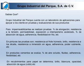 Grupo Industrial del Parque cuenta con un laboratorio de aplicaciones para apoyar a los cliente en pruebas y evaluaciones de sus p